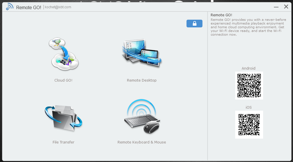 Набор программ Remote Go! уже встречался нам в тестированиях материнских плат компании. Компаньоном выступает одноименное мобильное приложение, которое можно скачать из официальных магазинов Android и iOS по представленным в программе QR-кодам. В рассматриваемом случае набор состоит из четырех модулей: синхронизация файлов с облачными хранилищами, удаленный рабочий стол, обмен файлами и удаленное управление. К сожалению, документация и внятное описание возможностей программы отсутствуют, что затрудняет работу с ней.