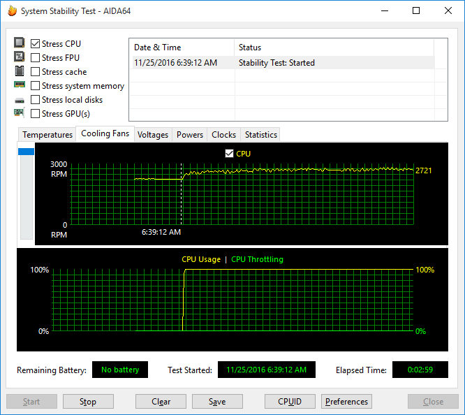 Скорость вращения вентилятора системы охлаждения в данном режиме составляет 2720 об/мин.