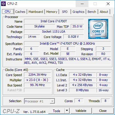 | Процессор | Intel Core i7-6700T | |