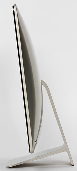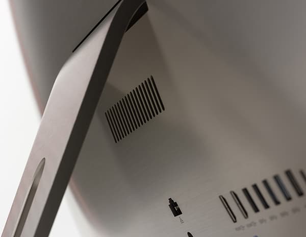 Корпус, равно как и подставка, выполнен из анодированного алюминия серебристого цвета (есть модели и в корпусе золотистого цвета). Сам корпус моноблока имеет максимальную толщину примерно 5 см, но за счет скругленной задней поверхности торцевые грани корпуса имеют толщину всего 11 мм.