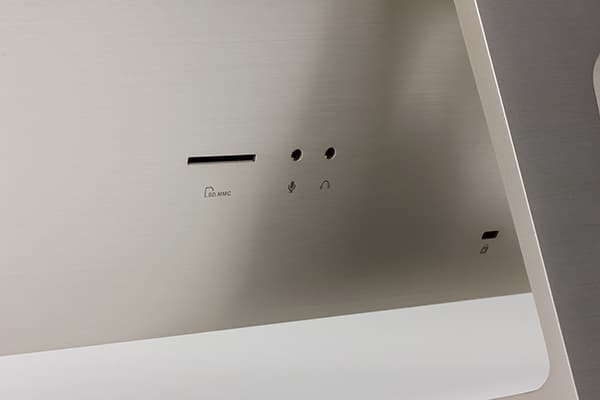 Кроме перечисленных разъемов на задней поверхности корпуса моноблока расположен разъем RJ-45, два аудиоразъема типа миниджек, отверстие для кенсингтонского замка и слот картовода.