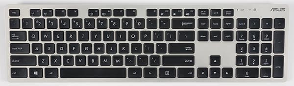 Как уже отмечалось, в комплекте к моноблоку Asus Zen AiO Pro Z240IC поставляются клавиатура и мышь. Это беспроводной комплект, который работает от миниатюрного USB-приемника.