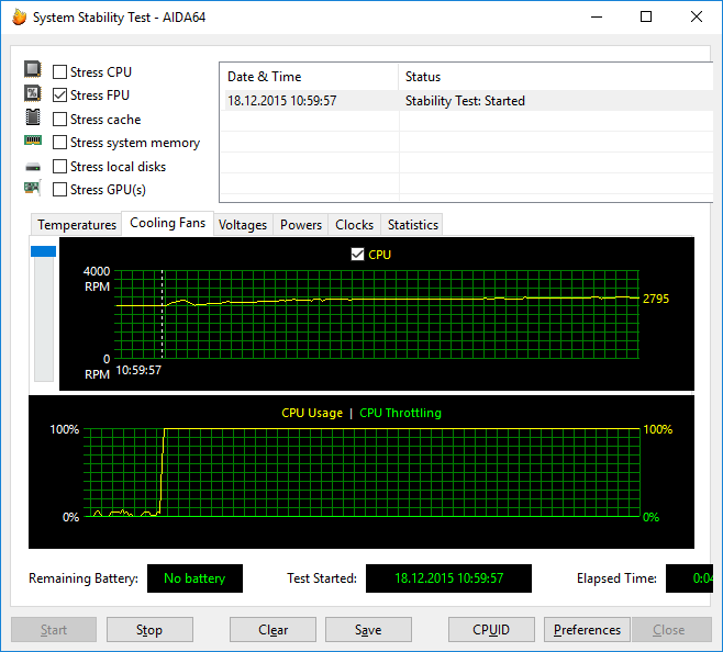 Вентилятор системы охлаждения в данном режиме загрузки увеличивает скорость вращения до 2795 об/мин.