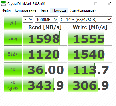 Приведем также результаты тестирования такими популярными утилитами, как CrystalDiskMark и AS SSD.