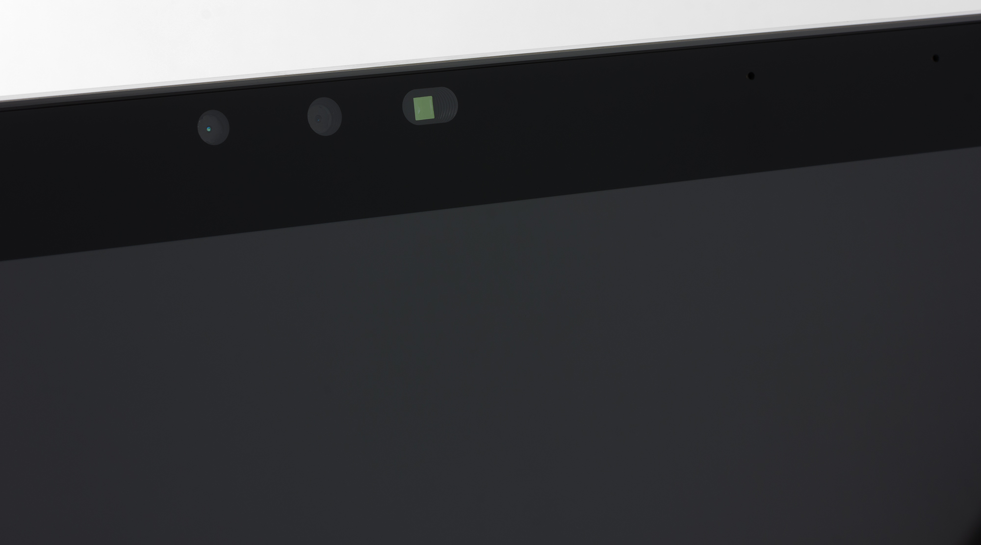Сверху по центру рамки экрана расположены три глазка 3D-камеры и миниатюрные отверстия двух микрофонов.