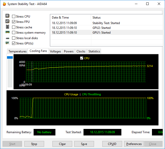 Скорость вращения вентилятора системы охлаждения в данном режиме загрузки увеличивается до 3214 об/мин.