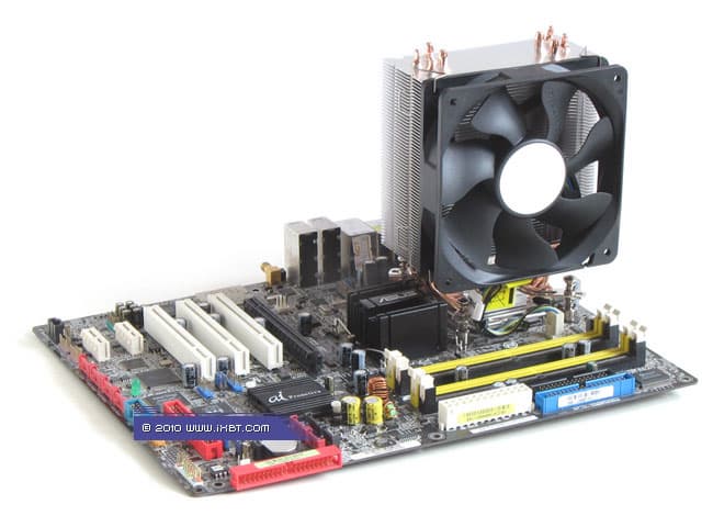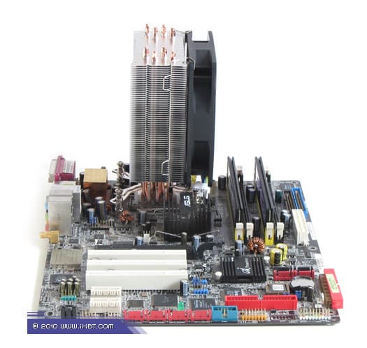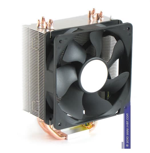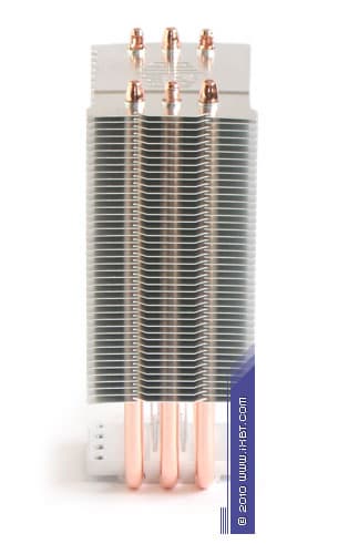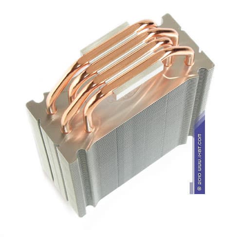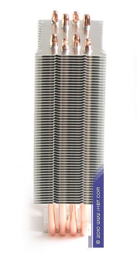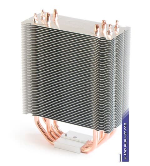 Конструктивные особенности (радиатор). «Рабочее тело» кулера базируется на технологии «прямого контакта» и имеет в своем составе четыре медные тепловые трубки диаметра 6 мм, алюминиевый механический держатель 35х38х8 мм и и секцию алюминиевого оребрения (57 пластин, общая площадь поверхности теплообмена порядка 6000 см2).