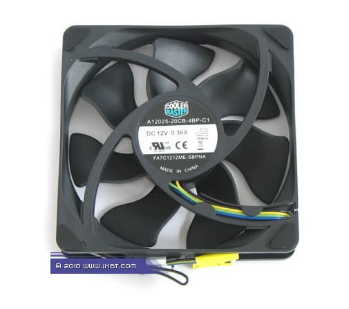 Конструктивные особенности (вентилятор). Кулер оснащен фирменным вентилятором Cooler Master FA7C1212ME-SBPNA (номинальная скорость вращения крыльчатки 2000 об/мин).