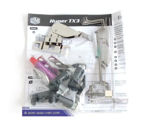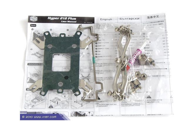 Поставка включает радиатор, фирменный вентилятор, комплект мультплатформенного крепежа (поддерживается большинство актуальных платформ — Intel LGA775/LGA1156 и AMD Socket AM2/AM3), маленький шприц с термопастой, фиксирующие скобки для вентиляторов (2 пары) и техническое руководство (присутствует русскоязычная инструкция).