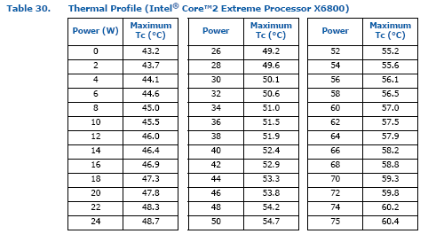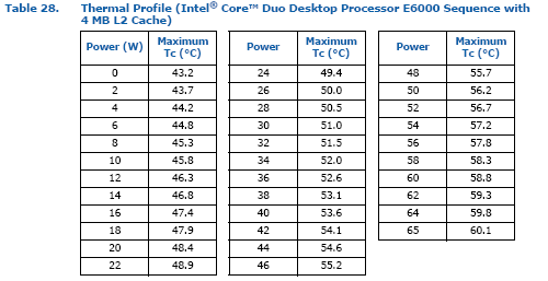 Дело в том, что «снижение TDP» новым процессорам обошлось не задаром: если для Пентиумов максимальная допустимая температура в центре хитспредера (металлической крышки) процессора составляла 68,6 градусов Цельсия (или чуть выше, в зависимости от модели процессора), то для линейки Intel Core 2 этот предел понизился почти на 10 градусов и составил 60,1-61,4 градуса в зависимости от модели!