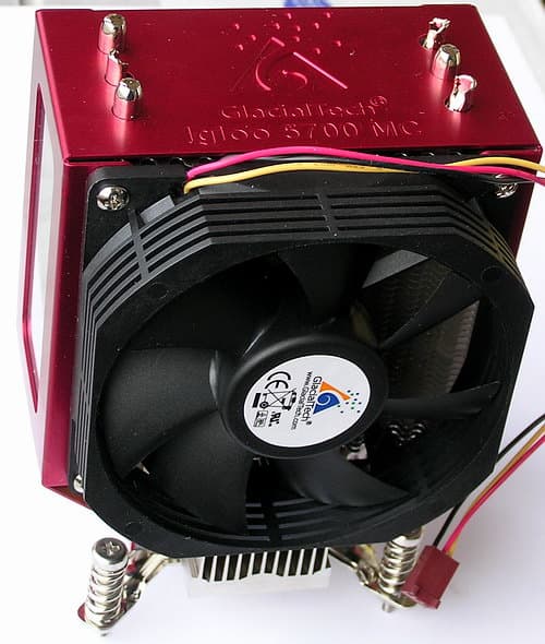1. GlacialTech Igloo 5700 MC на тепловых трубках, имеющий полностью алюминиевый, но с массивным основанием радиатор и высокоскоростной вентилятор. В прошлых наших обзорах он демонстрировал весьма достойные (одни из лучших) показатели теплоотдачи, в частности, за счет очень плотного прижима к процессору.