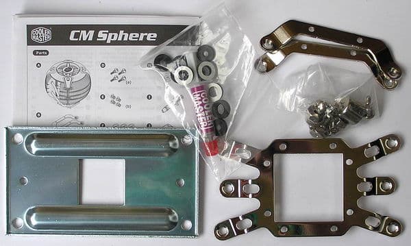 Cooler Master Sphere поставляется в стильной картонной коробке с вырезами под прикрытые пластиком окна, через которые виден сам кулер. В комплекте есть все необходимое, включая тюбик с фирменной термопастой.