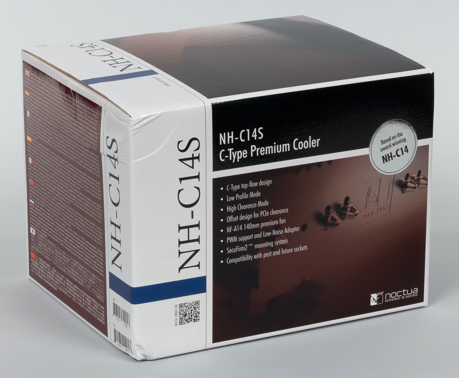 Предыдущую версию процессорного охладителя Noctua NH-C14 мы уже рассматривали в одном из наших обзоров, а теперь к нам в руки попала обновленная модель Noctua NH-C14S, которая получила дополнительную литеру «S» в названии. Модель NH-C14 была весьма успешной, а ее обновление должно решить небольшие проблемы совместимости с новыми компонентами ПК (видеокартами, модулями памяти) и небольшими корпусами. Кроме того, с Noctua NH-C14S поставляется новая модель вентилятора, которая призвана уменьшить общий уровень шума.