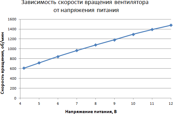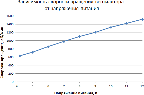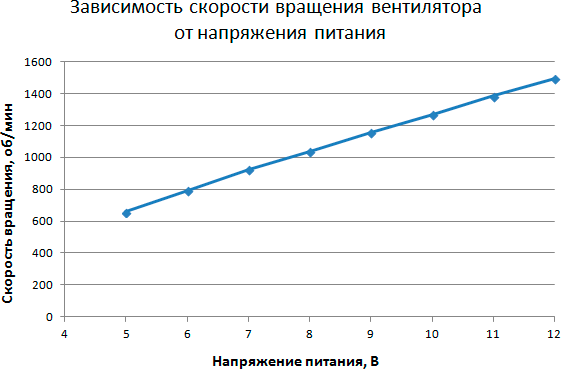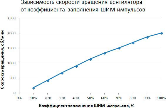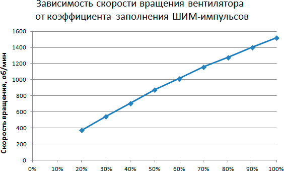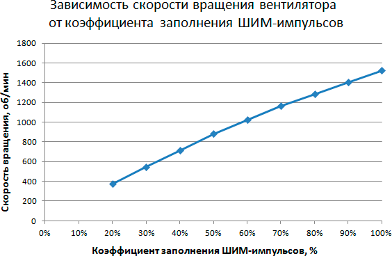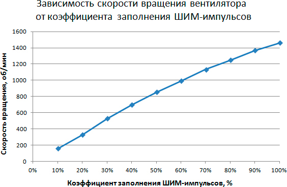 Этап 1. Определение зависимости скорости вращения вентилятора кулера от коэффициента заполнения ШИМ-импульсов и/или напряжения питания