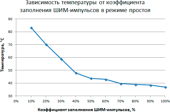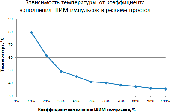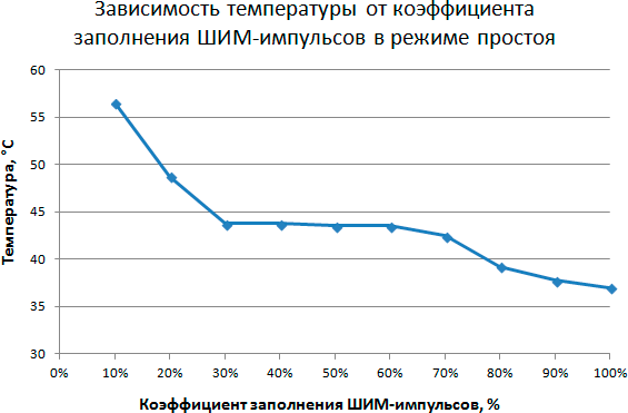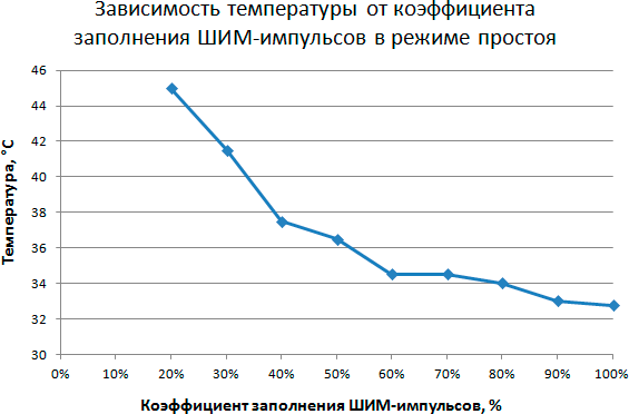 Этап 2. Определение зависимости температуры процессора в режиме простоя от коэффициента заполнения ШИМ-импульсов