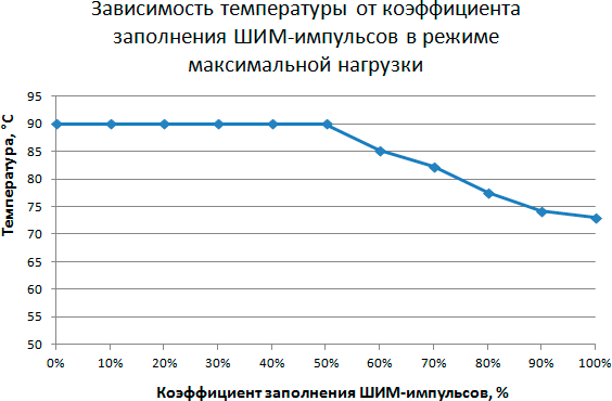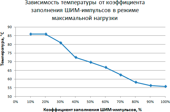 Этап 3. Определение зависимости температуры процессора при его полной загрузке от коэффициента заполнения ШИМ-импульсов
