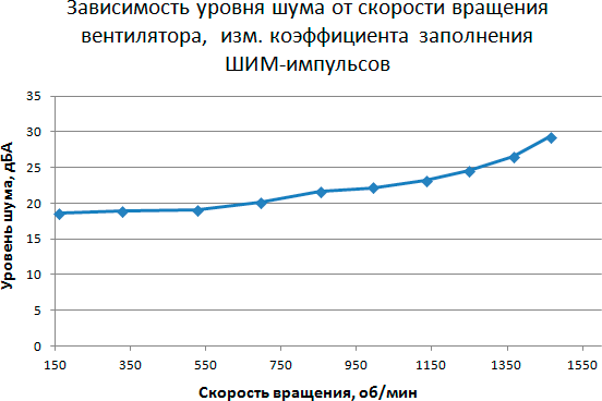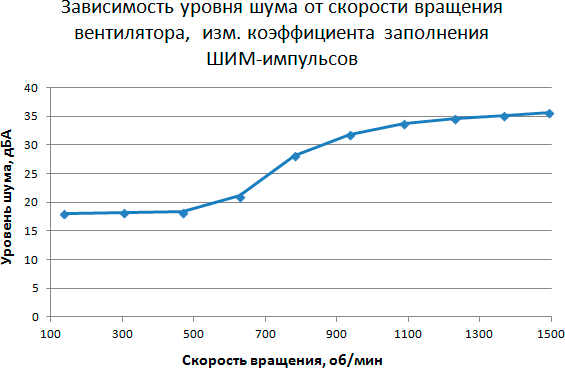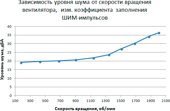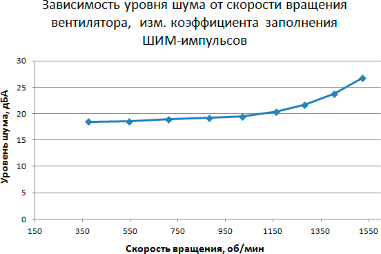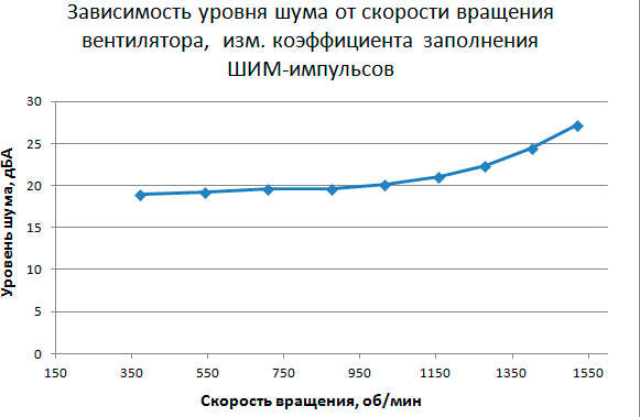 Этап 4. Определение уровня шума в зависимости от скорости вращения вентилятора кулера при управлении с помощью ШИМ-импульсов