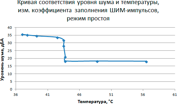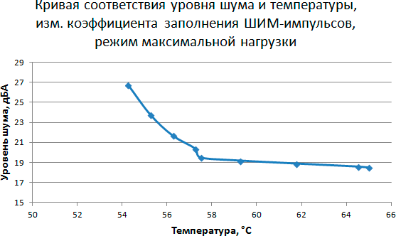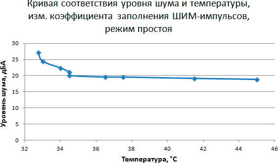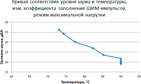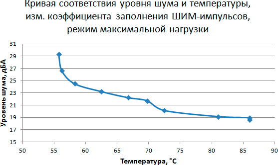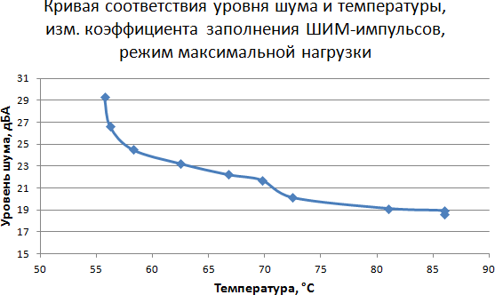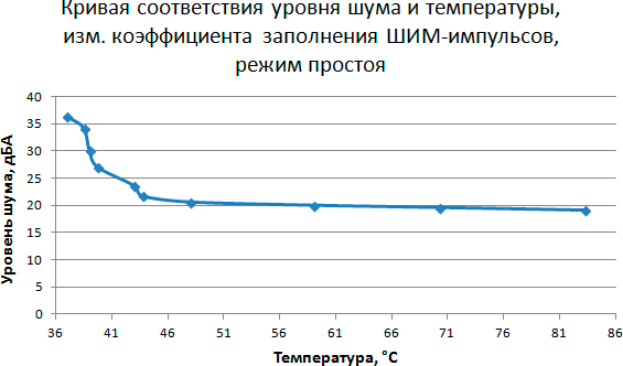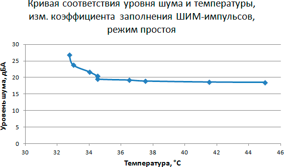 Этап 5. Построение кривой соответствия уровня шума и температуры в зависимости от скорости вращения вентилятора кулера при управлении с помощью ШИМ-импульсов
