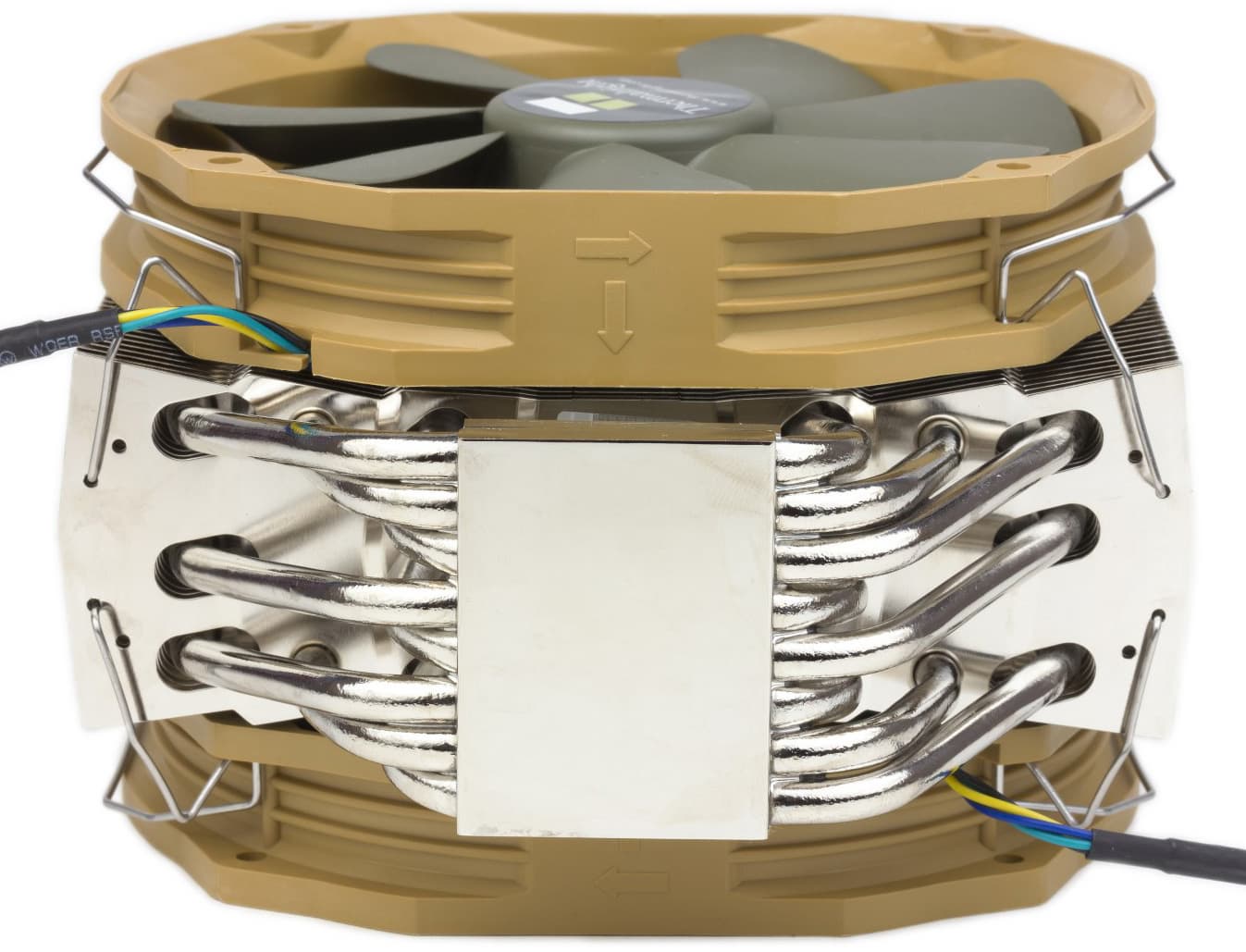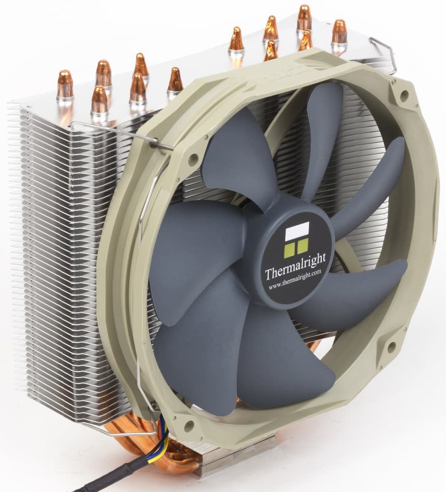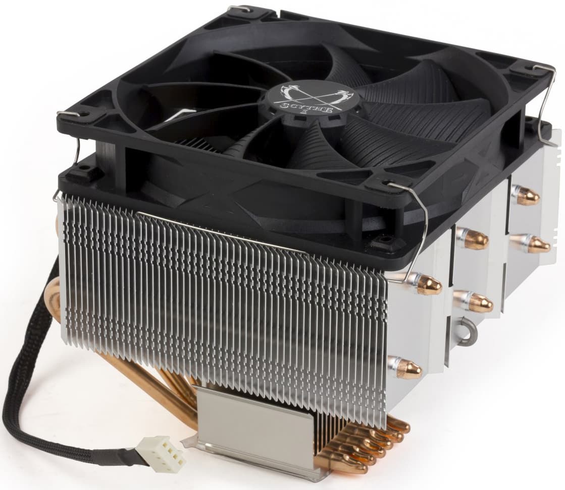 Шесть тепловых трубок передают тепло от никелированного медного основания радиатору, состоящему из алюминиевых ребер. Ребра очень тонкие (около 0,15 мм), расположены на расстоянии 2 мм.