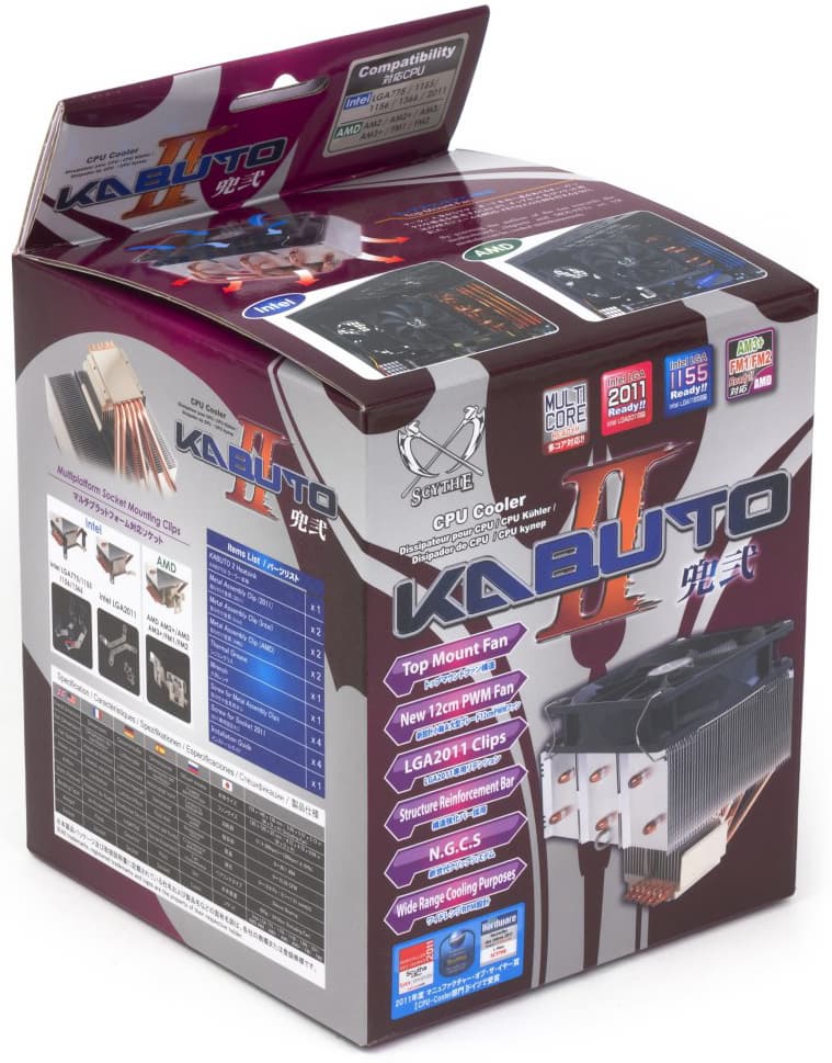 Воздушный поток создают два вентилятора: верхний 120-миллиметровый и нижний форматом 92 мм. Несмотря на то, что кулеры с горизонтально расположенными вентиляторами традиционно менее удобно крепить на плату (поскольку трудно добраться до крепежных деталей), в данном случае в графе «удобство установки» можно поставить четверку с минусом — и то лишь из-за того, что на саму процессорную рамку приходится накручивать дополнительные детали. А сам кулер устанавливается на подготовленное место без проблем, нужна лишь крестовая отвертка, которой предстоит затянуть пару винтов через отверстия в радиаторе. Причем сама отвертка есть в комплекте.