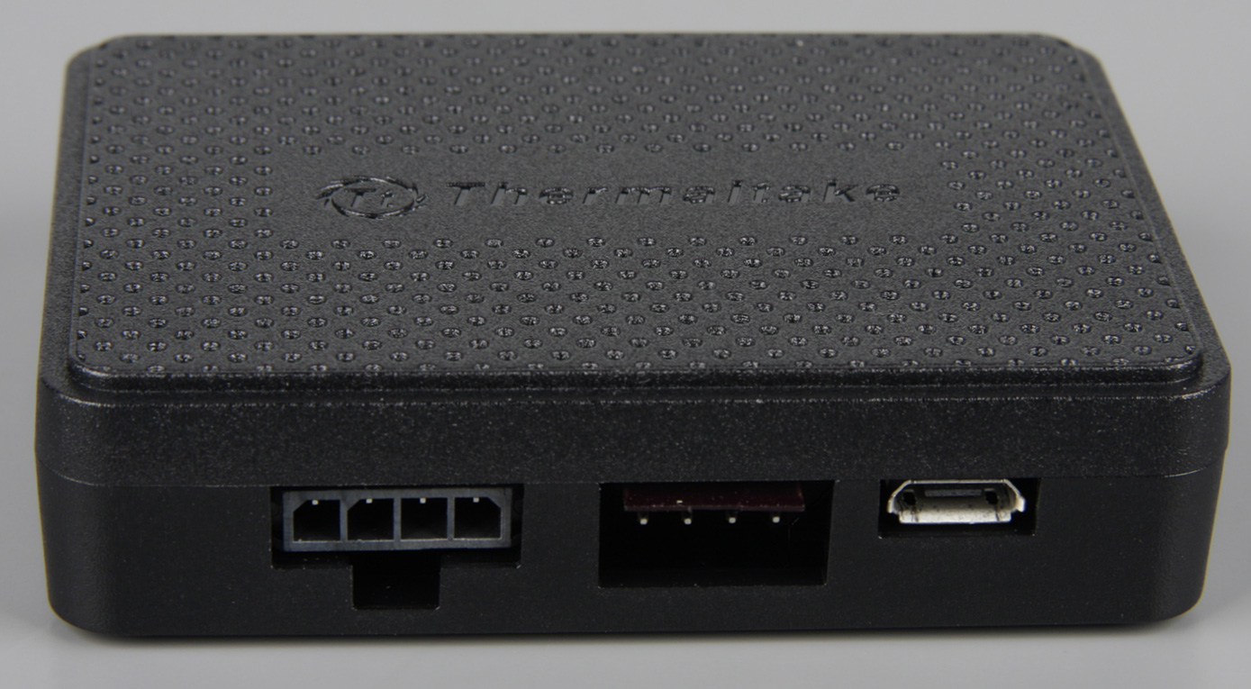 Руководство в виде файла PDF можно загрузить с сайта производителя. Контроллер к источнику питания подключается кабелем с гнездом типа «Molex». Соединять эти разъемы в варианте, когда обе части на кабеле, не всегда просто, поэтому если на кабеле от блока питания есть свободный разъем питания для 3,5″ дисковода, то лучше подключить этот разъем непосредственно к контроллеру Riing 12 RGB Radiator Fan TT Premium Edition. Кабель с разъемом Micro-USB и разъемом к колодке USB 2.0 соединяет контроллер и системную плату. На этом кабеле два разъема Micro-USB, поэтому им можно подключить сразу два контроллера. Вторым способом увеличения числа подключенных контроллеров является использование последовательного соединения контроллеров специальным входящим в комплект кабелем. Разъемы питания, последовательного соединения контроллеров и подключения к системной плате находятся на одной стороне контроллера.