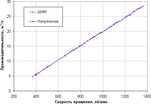 Результат ожидаемый — с точностью до погрешности измерений производительность в случае регулировки с помощью ШИМ или напряжения определяется только скоростью вращения крыльчатки вентилятора.