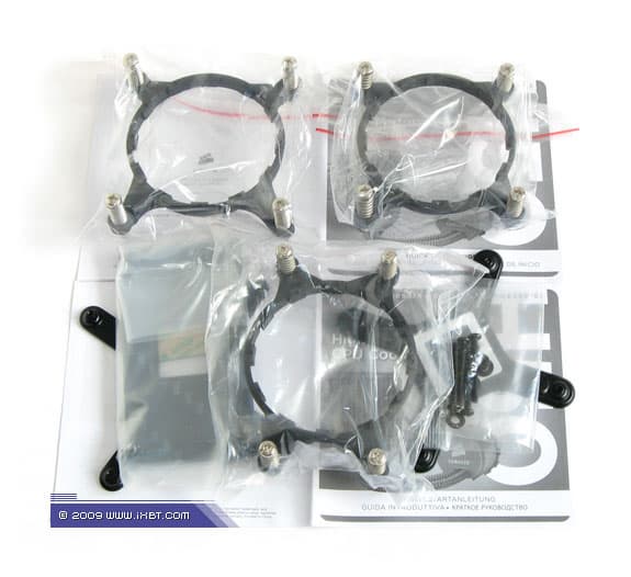 Поставка включает собственно сам платформер Asetek LCLC, фирменный вентилятор, набор мультплатформенного крепежа (поддерживаются платформы Intel LGA775 и LGA1366, AMD Socket AM2/AM3), набор метизов и краткое техническое руководство (присутствует русскоязычная инструкция).
