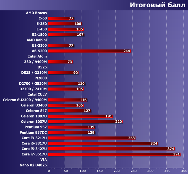 Разбиение по группам такое же, каким будет и на диаграммах: AMD Brazos и Kabini, Intel Atom (мы не стали разделять «каноническую» версию и выдумки NVIDIA и ее партнеров, чтоб не создавать лишней путаницы; тем более что к тюнингу этой платформы подключились и партнеры AMD), Intel CULV и VIA (в количестве одного решения). По этой же методике мы протестировали и три вариации десктопных систем, но в итоги решили их не включать из-за явной синтетичности и утрате актуальности к концу 2013 года.