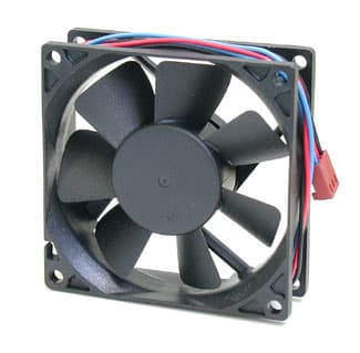 «Ходовая» часть вентилятора может быть построена на подшипнике скольжения (sleeve bearing, наиболее дешевая и недолговечная конструкция), на комбинированном подшипнике — один подшипник скольжения плюс один подшипник качения (one sleeve -one ball bearing, наиболее распространенная конструкция), и на двух подшипниках качения (two ball bearings, самая дорогая, но в то же время очень надежная и долговечная конструкция). Ну, а электрическая часть вентилятора повсеместно представляет собой миниатюрный электродвигатель постоянного тока.