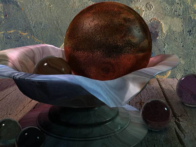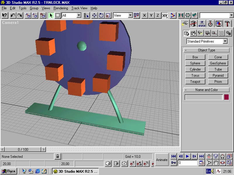 Поэтому для тестирования были выбраны две довольно сложные сцены (они находятся на втором CD комплекта 3DMAX. Вы можете скачать их здесь: mtlstudy.zip (159Kb) и cballs.zip (54 Kb) и использовать их для определения скорости финального рендеринга, а также мы использовали сцену trnlock.max для определения зависимости скорости работы во вьювпортах от скорости CPU. (Подробнее о 3DMAX и сравнении видеокарт при работе с этой программой Вы можете прочитать в этой статье)