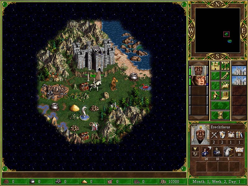 В сценарии "Myth and Legends" я подождал окончания десятого дня, не делая никаких ходов самостоятельно, для того, чтобы мои противники немного развились, и время обсчета компьютером хода оппонента увеличилось примерно до среднеигрового. Если Вы хотите повторить этот тест, то скачайте этот save файл (374 Kb) и поместите его в поддиректорию HeroesIII/Games. Также вам понадобится оригинальная версия Heroes III и Armageddon Blade expansion pack.