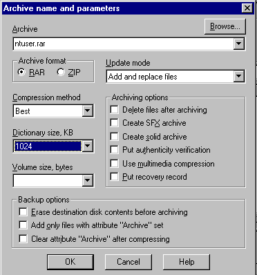 Наиболее удобный, на мой взгляд, архиватор. Опции при архивировании были следующими: