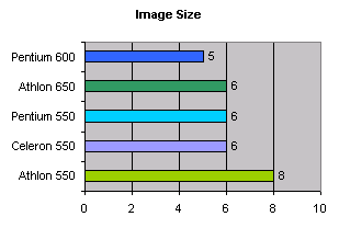 быстрее всех, Pentium III и Athlon показывают примерно одинаковые результаты. К слову, Photoshop очень чувствителен к пропускной способности памяти, то есть при 133 MHz шине скорость возрастает почти прямо пропорционально. Таким образом, по итогам теста Photoshop, победа присуждается самому дешевому процессору из рассмотренных - Intel Celeron.