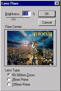 Lenz flare — тоже весьма распространенный эффект. Я применял его к нашему файлу со следующими параметрами.