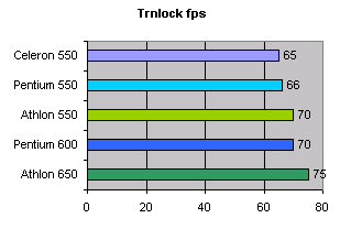 Как Вы видите, отличие если и есть, то только в низких разрешениях, но кто будет играть в 800х600, если в 1024х768 мы получаем играбельный fps? Q3 был настроен на максимальное качество картинки, при среднем или минимальном качестве различия в скорости процессоров есть и на больших разрешениях, но опять встает тот же вопрос — зачем играть с пониженным качеством, когда можно играть с лучшим и без тормозов?