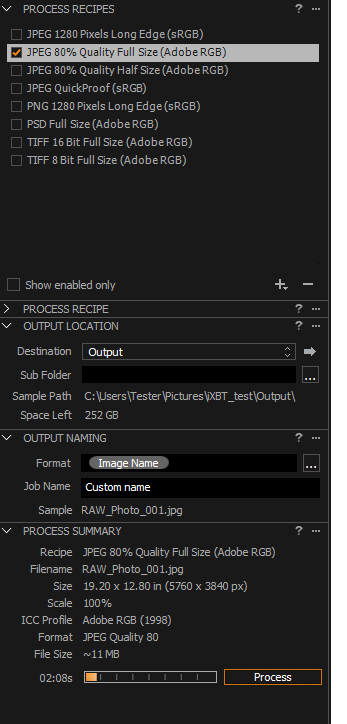 - сохранение фотографий в формате JPEG (JPEG 80% Quality Full Size (Adobe RGB)).
