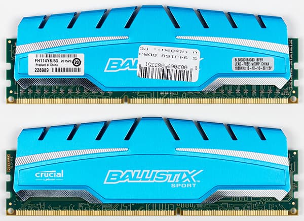 Итак, в этом обзоре мы рассмотрим три комплекта памяти DDR3: Crucial Ballistix Elite 16 GB DDR3-1866 (набор 2 × 8 ГБ), Crucial Ballistix Sport 16 GB DDR3-1866 (набор 2 × 8 ГБ) и Patriot Viper 3 DDR3-2133. Отметим, что комплект Patriot Viper 3 представляет собой набор из четырех модулей суммарным объемом 32 ГБ (4 × 8 ГБ), но для сопоставления его с другими двумя комплектами мы использовали лишь два модуля из четырех. Все три комплекта представляют собой небуферизованную память UDIMM без ECC, то есть ориентированы на обычные (не серверные) процессоры для настольных ПК.