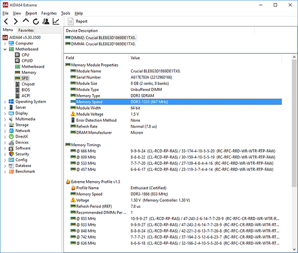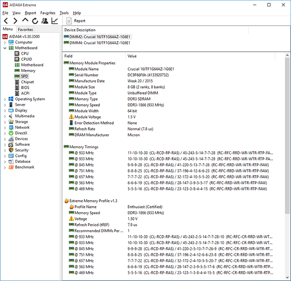 Согласно спецификации, эти модули поддерживают работу на частоте 1866 МГц при напряжении питания 1,5 В и таймингах 10-10-10-30.