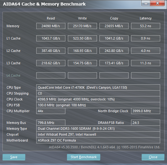 В ходе тестирования выяснилось, что частота 2133 МГц не является предельной для данных модулей памяти: эту память удалось разогнать до частоты 2400 МГц. Правда, для этого пришлось снизить тайминги до 11-12-12-30 при напряжении питания 1,5 В.