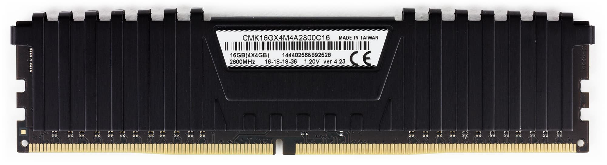 Это комплект их четырех модулей памяти с суммарной емкостью 16 ГБ. Модули памяти имеют заявленную частоту работы 2800 МГц и тайминги 16-18-18-36 при напряжении питания 1,2 В.