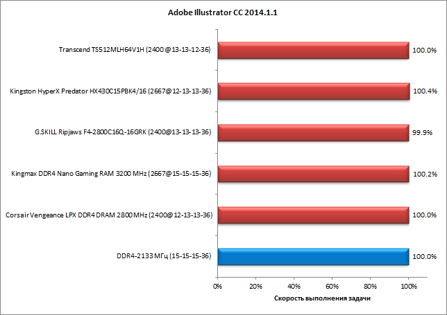 Поскольку во всех наших тестах все комплекты памяти в режиме DDR4-2133 с таймингами 15-15-15-36 выдали практически одинаковые результаты, в дальнейшем мы будем говорить просто о памяти DDR4-2133 с таймингами 15-15-15-36, подразумевая под ней любой комплект с настройками по умолчанию.