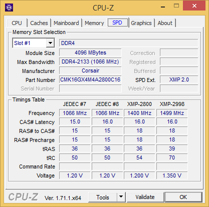 По умолчанию эта память заводится на частоте 2133 МГц с таймингами 15-15-15-36 (как и должно быть).