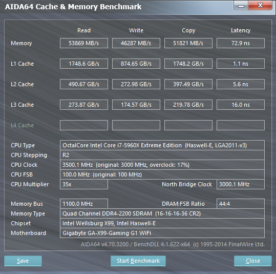 Конечно, это не означает, что память Сorsair Vengeance LPX DDR4 DRAM 2800 MHz (CMK16GX3M4A2800C16) не может работать на заявленной частоте и, что нас обманули. Ведь кроме самих модулей памяти такую частоту должен поддерживать еще и контроллер памяти, который встроен в процессор, да и сама материнская плата. Что касается процессора, то мы использовали Intel Core i7-5960X. Причем, в нашем распоряжении было два экземпляра процессора. Мы опробовали оба экземпляра, но результат был один и тот же: при активации XMP-профиля система не грузится. Можно было, конечно, попробовать еще и другую системную плату, однако, этого мы делать не стали и не только потому, что ее не было в наличии, но еще и потому, что мы решили использовать ту же плату, что и в первой части нашего тестирования.