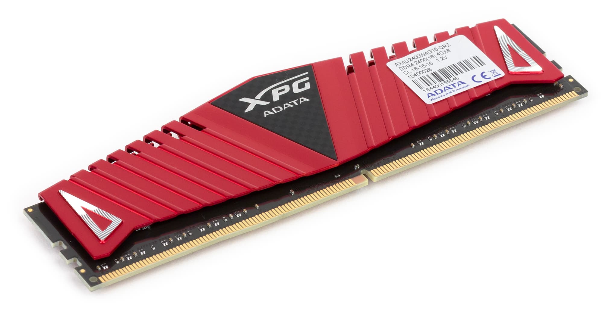 Далее мы рассмотрим комплект из четырех модулей памяти AData XPG AX4U2400W4G16-QRZ. Как несложно догадаться по названию, речь идет о модулях памяти DDR4-2400 с таймингами 16-16-16. Напряжение питания этих модулей памяти составляет 1,2 В.