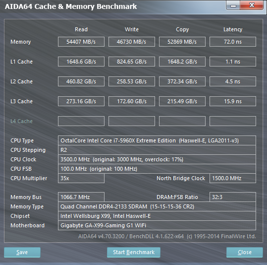 В случае платы Gigabyte GA X99-Gaming G1 WIFI этот же комплект памяти определялся как DDR4-2400, но уже с таймингами 16-16-16-35.