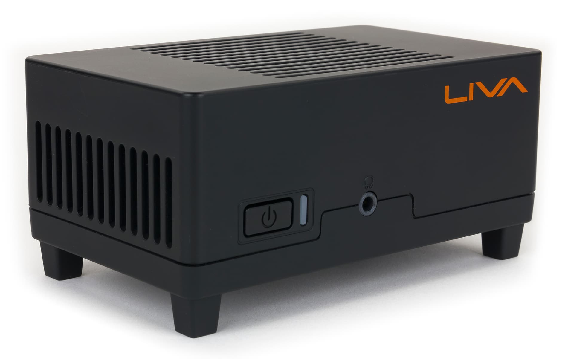 По дизайну корпус очень простой. Он представляет собой пластиковую миниатюрную коробочку, сверху и с двух боковых сторон которой имеются вентиляционные решетки. На передней панели корпуса расположена кнопка включения со светодиодным индикатором и комбинированный аудиоразъем типа миниджек.