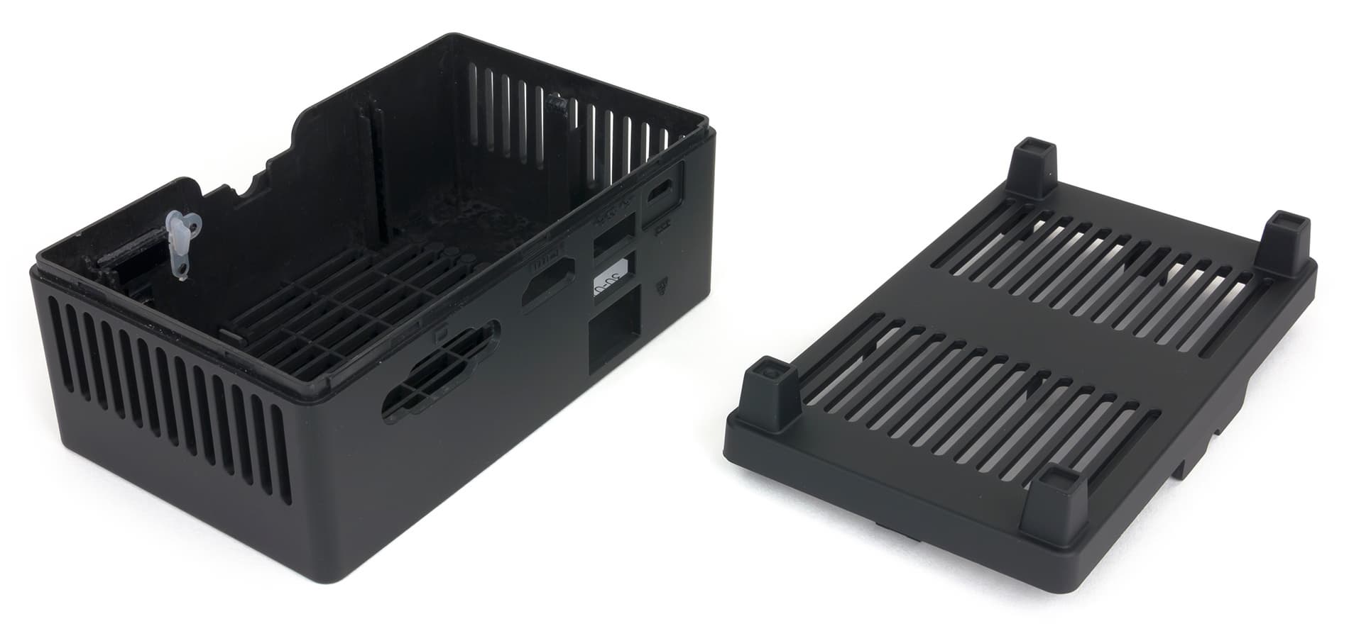 Пластиковый корпус ECS Liva предусматривает возможность безотверточной сборки/разборки. В этом есть, конечно, плюс, но есть и минусы. Дело в том, что пластик, из которого изготовлен корпус, мягко говоря, не самого высокого качества: он очень жесткий и плохо гнется. Собрать корпус (то есть захлопнуть нижнюю панель) не составляет труда, а вот снять эту панель не так-то просто — плохо гнущийся пластик запросто может треснуть. Так что уж лучше бы было предусмотрено нормальное винтовое крепление нижней панели — это было бы более надежно.