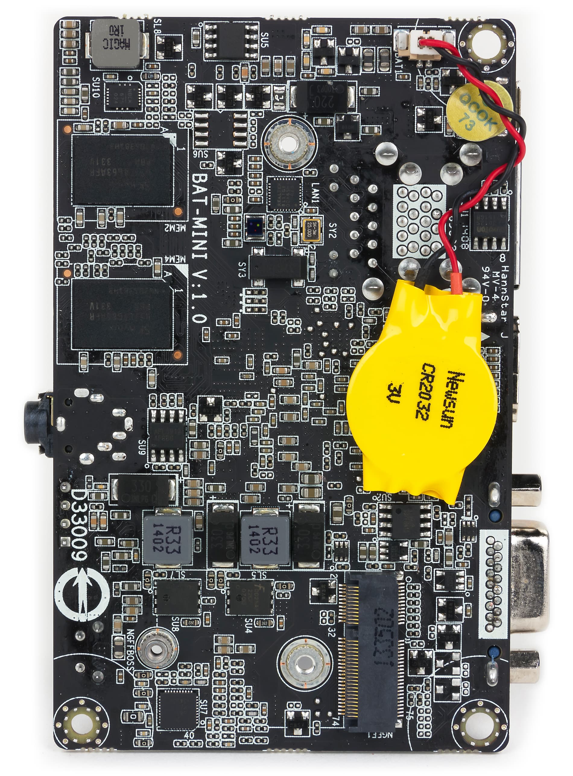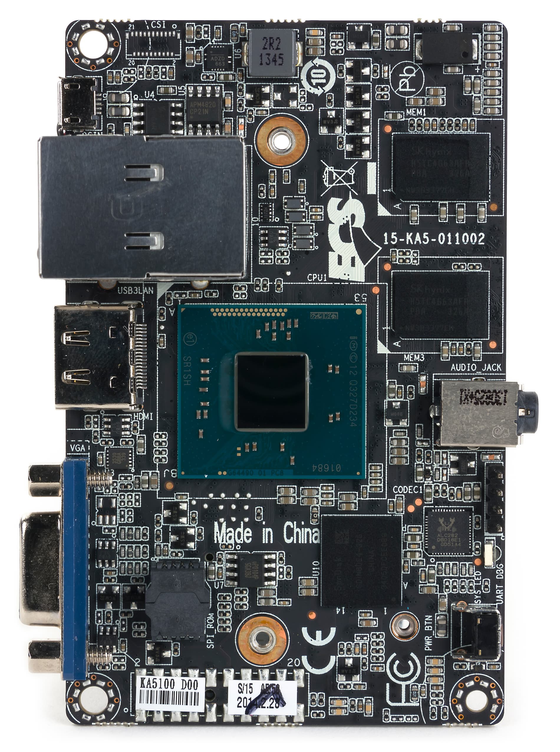 Материнская плата в ECS Liva миниатюрная, так что она вынужденно является двухсторонней. С одной стороны платы расположены процессор (SoC), микросхема eMMC-накопителя, две микросхемы памяти и аудиокодек, а с другой — разъем M.2 и еще две микросхемы памяти.