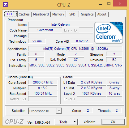 | Процессор | Intel Celeron N2806 (Intel Bay Trail-M) |