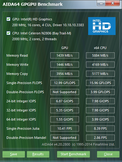Графическое ядро SoC Intel Celeron N2806 (Intel HD Graphics) работает на тактовой частоте 313—756 МГц и имеет всего четыре исполнительных устройства. Формально это ядро поддерживает DirectX 11, однако для игр такая графика все равно не подходит. Отметим, что графическое ядро поддерживает возможность одновременного подключения двух мониторов, а в ECS Liva для подключения мониторов предусмотрены разъемы HDMI и VGA.
